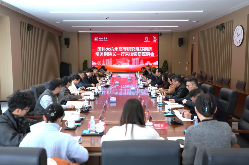 3月10日上午,国科大杭州高等研究院党委委员、常务副院长郑崇辉一行来校调研交流。学校党委书记金波,党委委员、副校长沈月娣出席,相关职能部门负责人陪同。